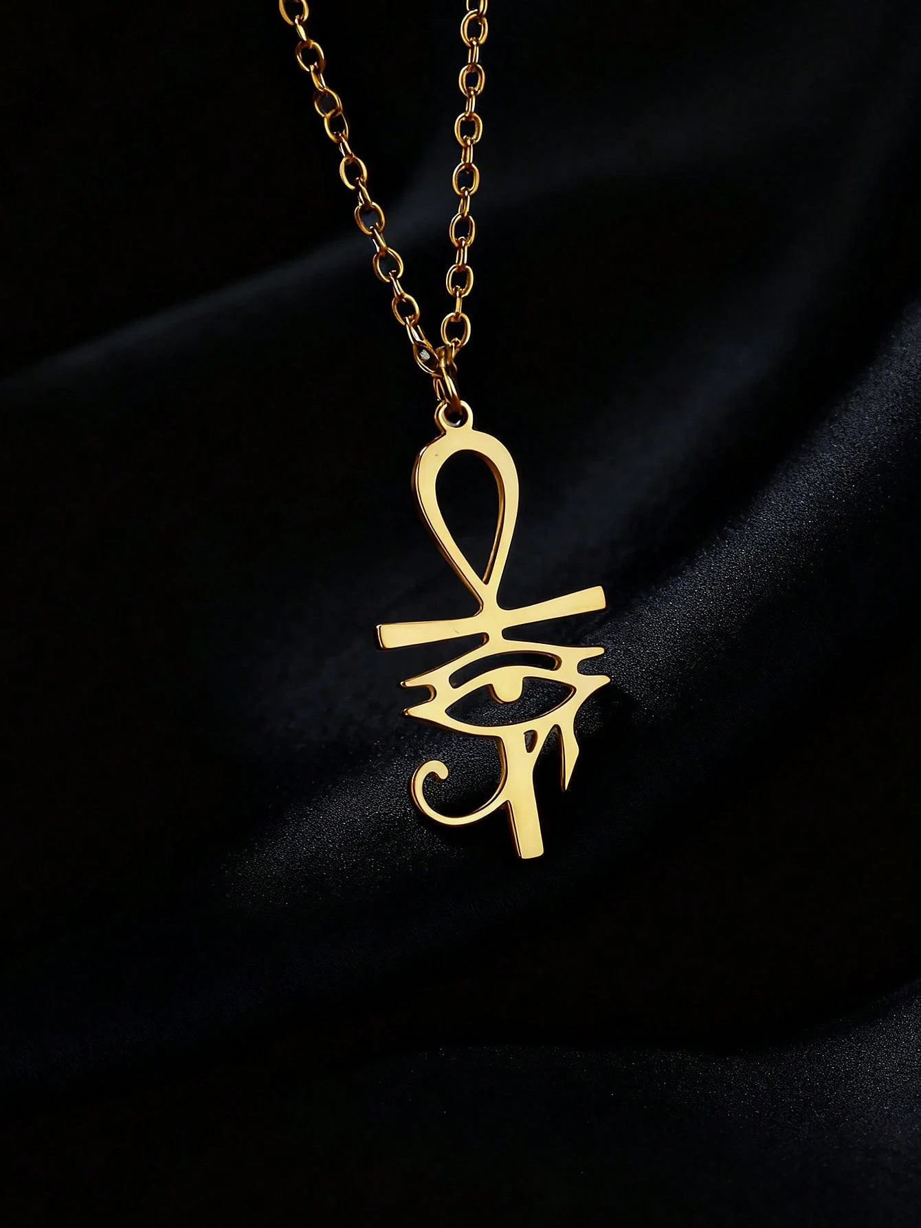 Eye Of Horus Pendant Necklaces For Men Women 18K Stainless Steel Necklace Ancient Egyptian Cross Charm Men's Jewelry Accessory Women Daily Party Wear Birthday Gifts